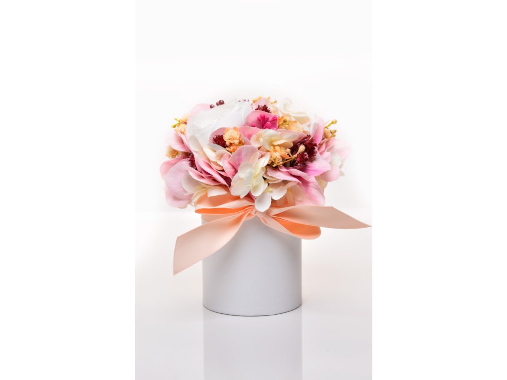 Harmonická kombinace jemně růžových květin a bílého boxu vytváří elegantní celek, který přináší do prostoru lehkost, něhu a příjemnou atmosféru. Flowerbox se skvěle hodí jako dekorace na slavnostní stůl, dárek z lásky nebo pozornost pro ty, na kterých vám záleží.