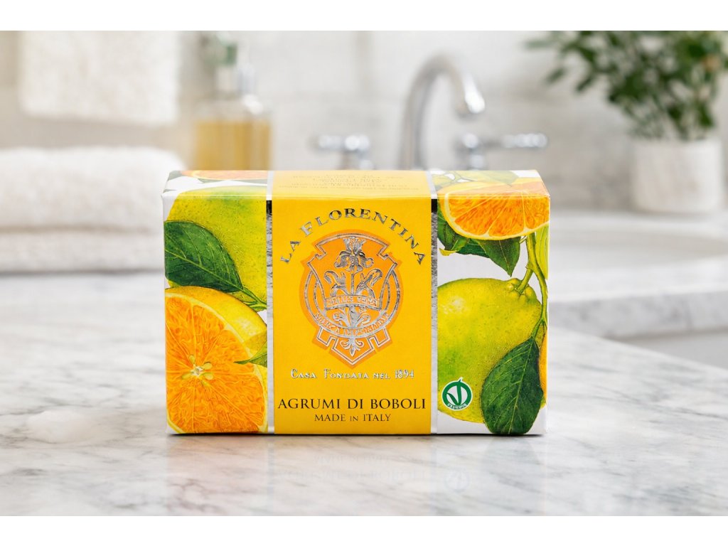 Luxusní italské mýdlo La Florentina Agrumi di Boboli přináší svěží vůni středomořských citrusů inspirovanou slavnými zahradami Boboli ve Florencii. Energizující aroma pomeranče, citronu a mandarinky probouzí smysly a dodává pokožce pocit čistoty, svěžesti a vitality.