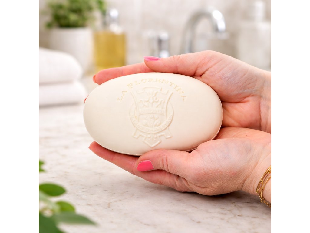 Mýdlo je vyrobeno v Itálii a díky své vysoké gramáži vydrží déle než běžná tuhá mýdla. Při použití vytváří jemnou krémovou pěnu, která pokožku šetrně čistí a zanechává ji hebkou, svěží a příjemně provoněnou.