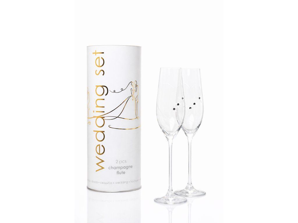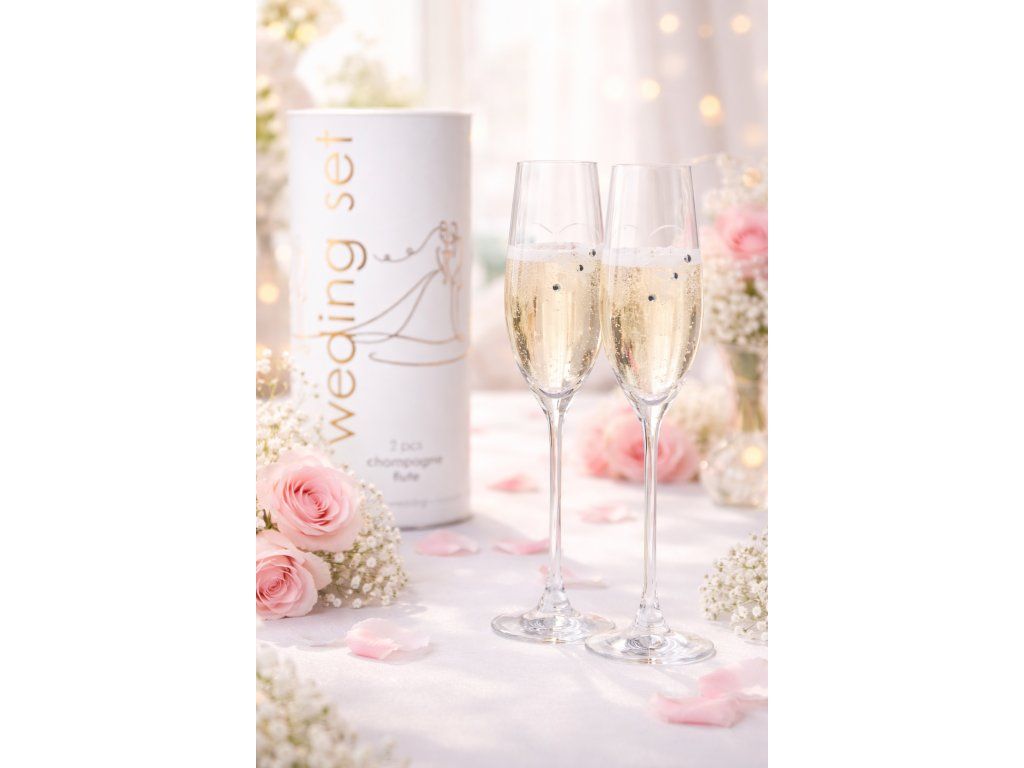Svatební sada dvou elegantních sklenic na šampaňské o objemu 210 ml, zdobených originálními krystaly Swarovski, podtrhne kouzlo výjimečných chvil a slavnostního přípitku. Díky nadčasovému designu a preciznímu zpracování je krásným doplňkem svatebního dne i vkusným dárkem pro novomanžele.