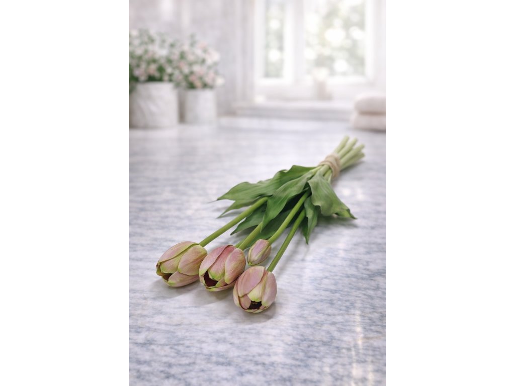Přirozený tvar květů, jemné detaily okvětních lístků i realistické listy vytvářejí dojem čerstvě řezaných tulipánů. Svazek je ideální do vázy jako samostatná dekorace, ale také jako doplněk do flower boxů, aranžmá nebo sezónních dekorací.